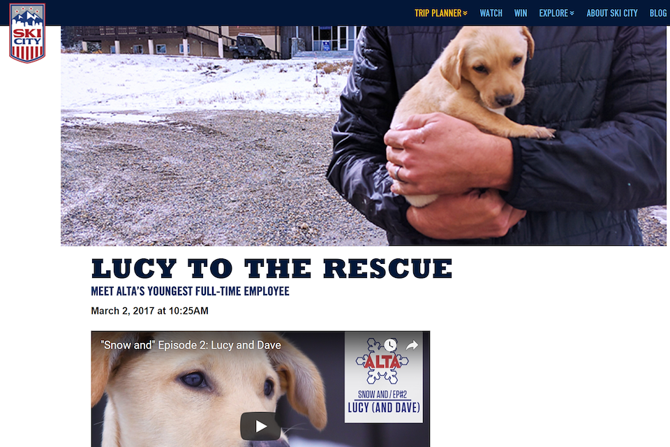 Interest piece on Visit Salt Lake’s website. https://www.visitsaltlake.com/skicity/ski-blog/post/2017/2/Lucy-To-The-Rescue-/37/